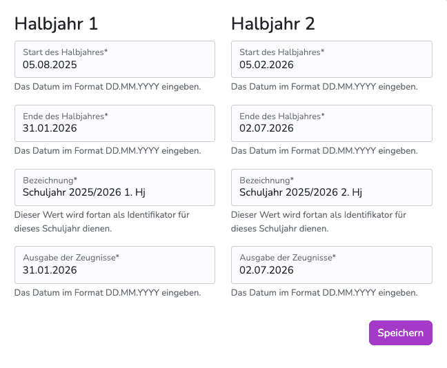 Schuljahre und Halbjahre anlegen